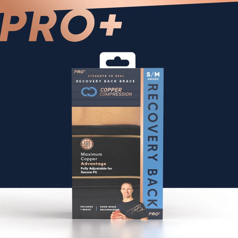 The PRO+ Back Brace by Copper Compression: chosen by elite athletes like MVP Quarterback Drew Brees. Support your lower back in any activity: ideal for training and lifting, stretching, and quick recovery. Perform your best and bounce back fast with targeted compression and support for your lower back and core.