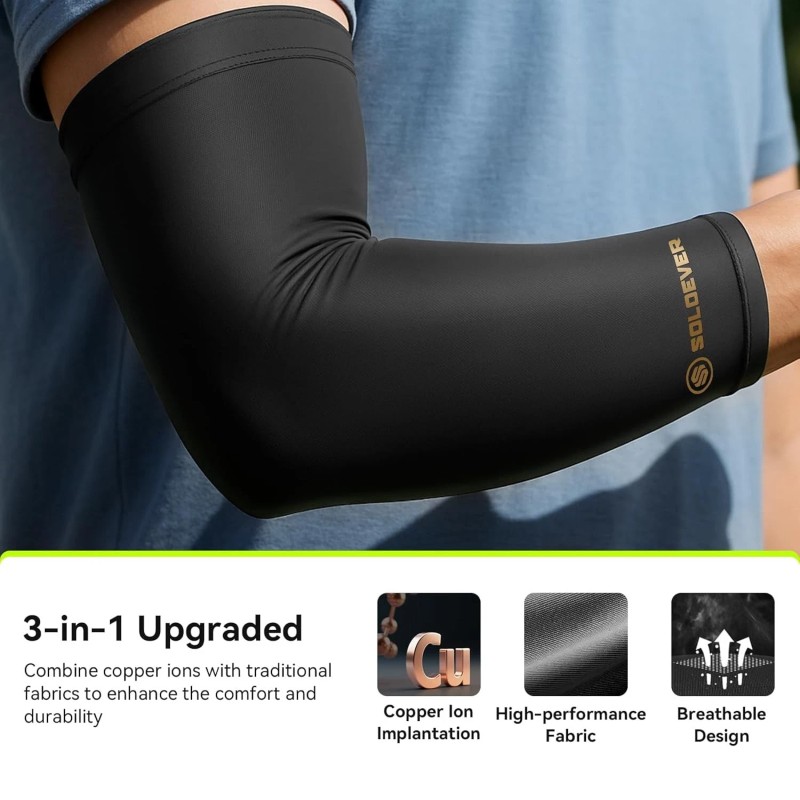 - fabric infused with copper ions for added comfort and durability—moisture-wicking design keeps your arm dry and cool.