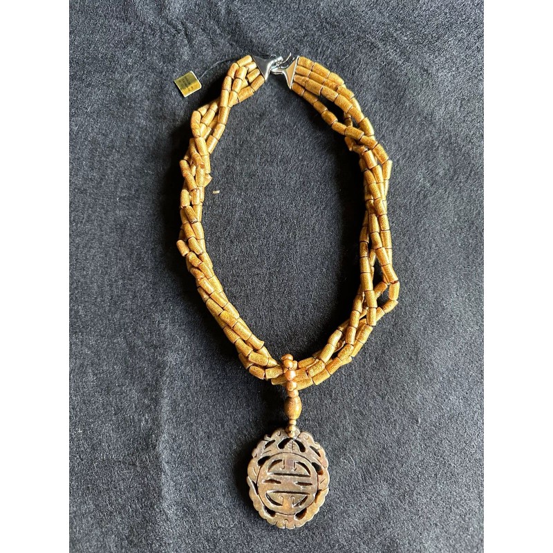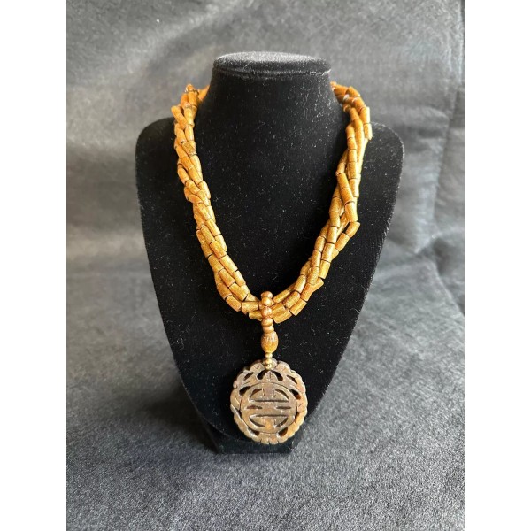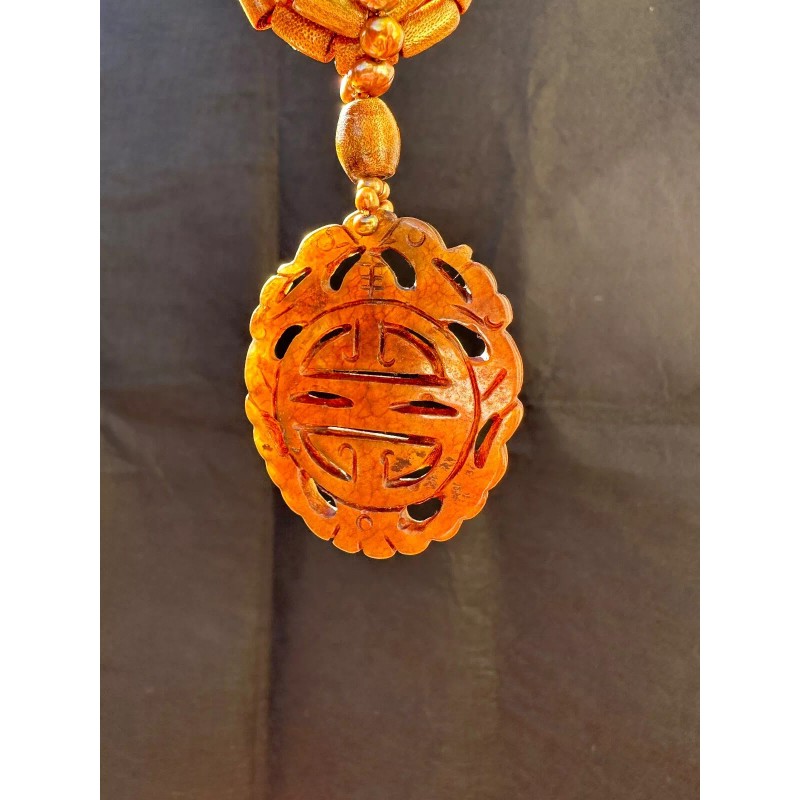 Unbranded Coral and Jade Necklace w/ Matching Bracelet. Hand Carved Jade Pendant.