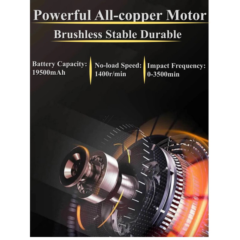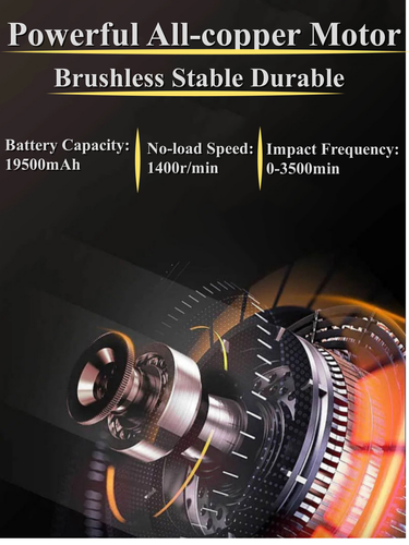 Strong Power: The brushless pure copper motor delivers strong power with 1400r/min no-loading speed and 0-3500min impact frequency, making it easier for you to punch holes without replacing carbon brushes, greatly improving efficiency and quality.