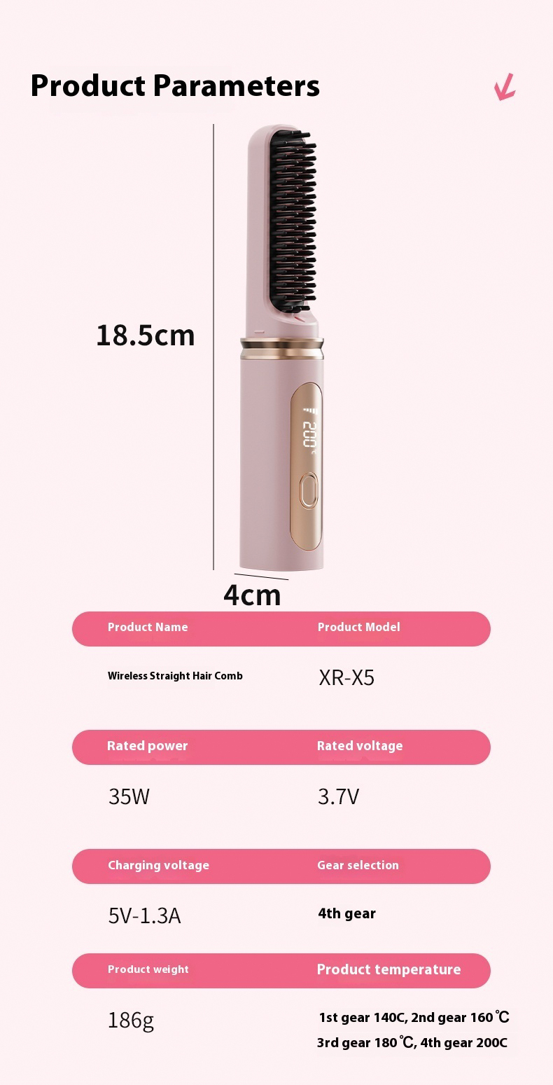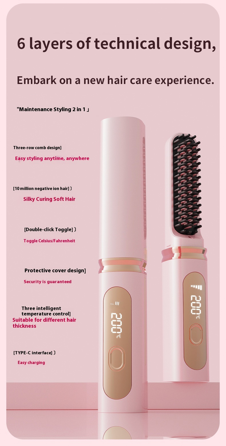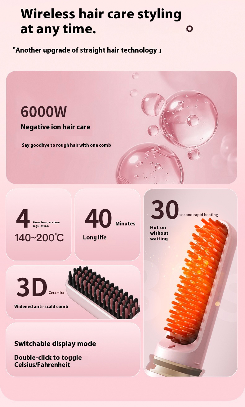 Unbranded Cordless Straightening Brush & Hair Straightener Wireless Charging Portable Mini