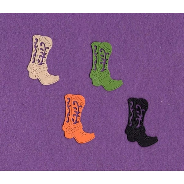 You will receive 4 acid free die cuts in your choice of colors. The boots are 1 3/4 inches wide and 2 inches tall. They are made with great care and attention to detail in my smoke free home. I'm sure you will love them.