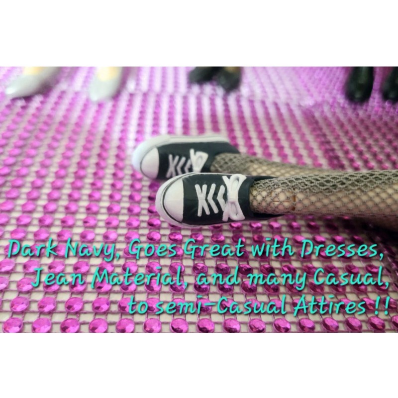 This set includes 12 pieces of realistic shoes and accessories for Barbie dolls and other 1/6 Scale dolls. featuring 2 pair ConverseTypeShoes, 2 pair Mary Jane Heels, 2 Pair Ballet Flats, One Fancy Designer style Purse. ALL made quality Silicone/ Plastic, plus cotton polyester tights