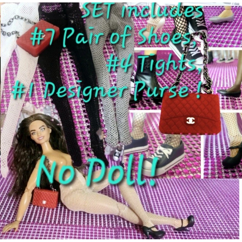 - Set Includes: Shoes, Undergarment, #7 Pair Hybrid Barbie Shoes, #4 Pair Barbie Tights , I Purse