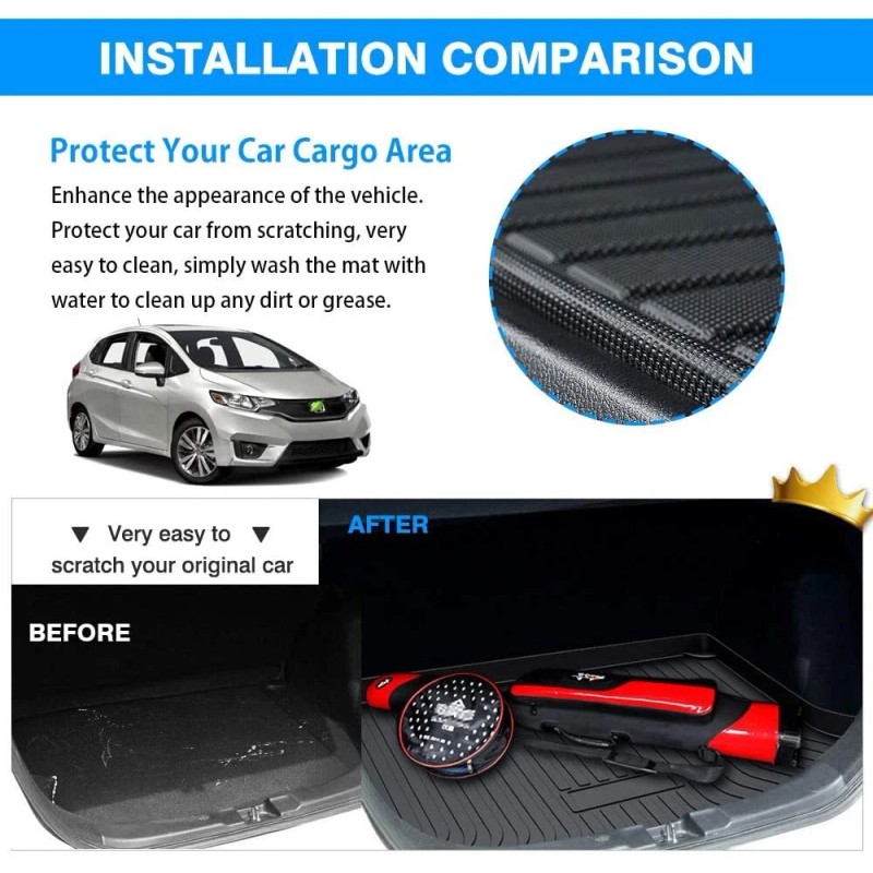 2.Mess thanks to the liners raised and strengthened lip. Make the car keep far from the Mud,Dirt, Snow, Water and the rear trunk look good.Top of the line all-weather, stain-resistant, 100% waterproof odorless protection that gives your car,SUV, truck, or van interior a first class look while protecting the resale value.