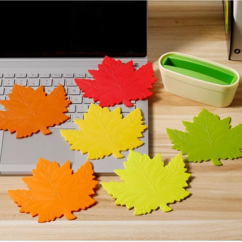 Unbranded Cute Maple Leaf Decor Novelty Drink Coasters Set of 6 with Flowerpot Holder
