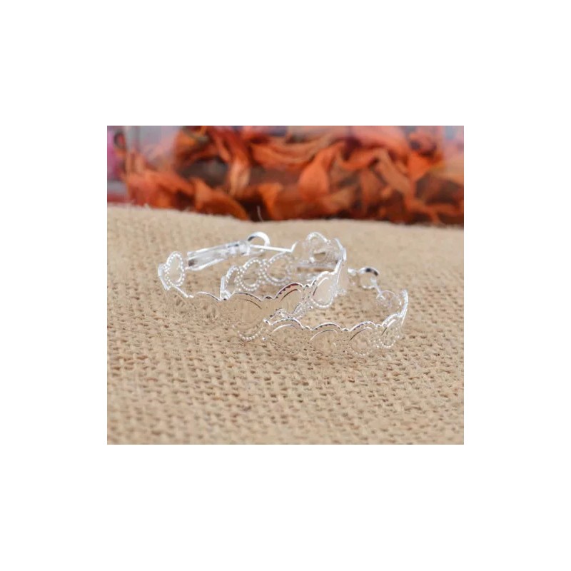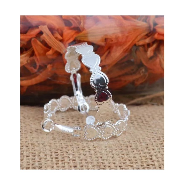Pretty New Sterling Silver Plated 1.5" Heart Design Round Hoop Earrings w/Omega Backs