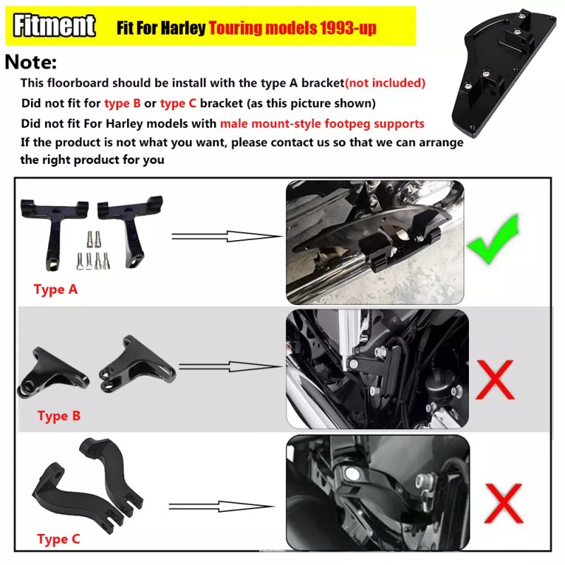 This floorboard should be install with the type A bracket(not included)