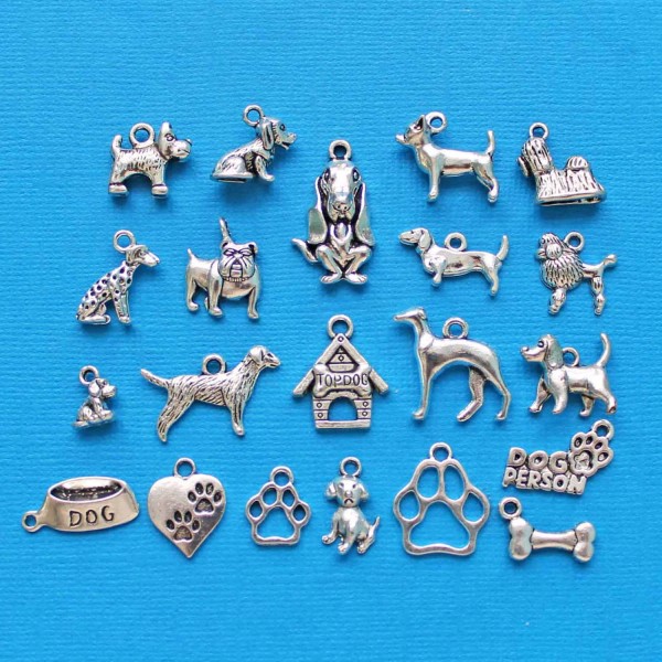 Unbranded Deluxe Dog Charm Collection Antique Silver Tone 21 Different Charms - COL023