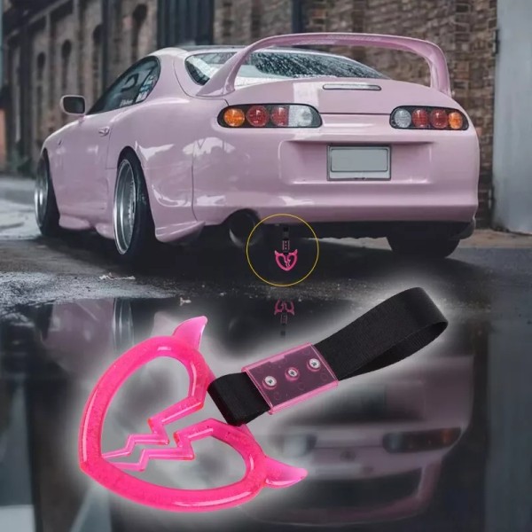 Unbranded Devil Demon Broken Heart Crystal Pink TSURIKAWA Ring Bus Handle Strap Charm