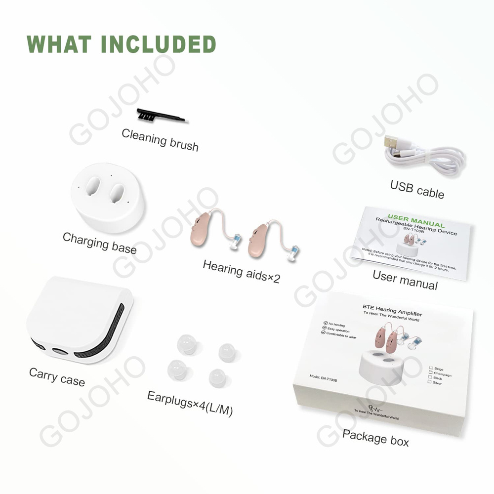 3.Please use the correct wearing method to ensure that the hearing closely match the ear canal to avoid sound feedback and howling.