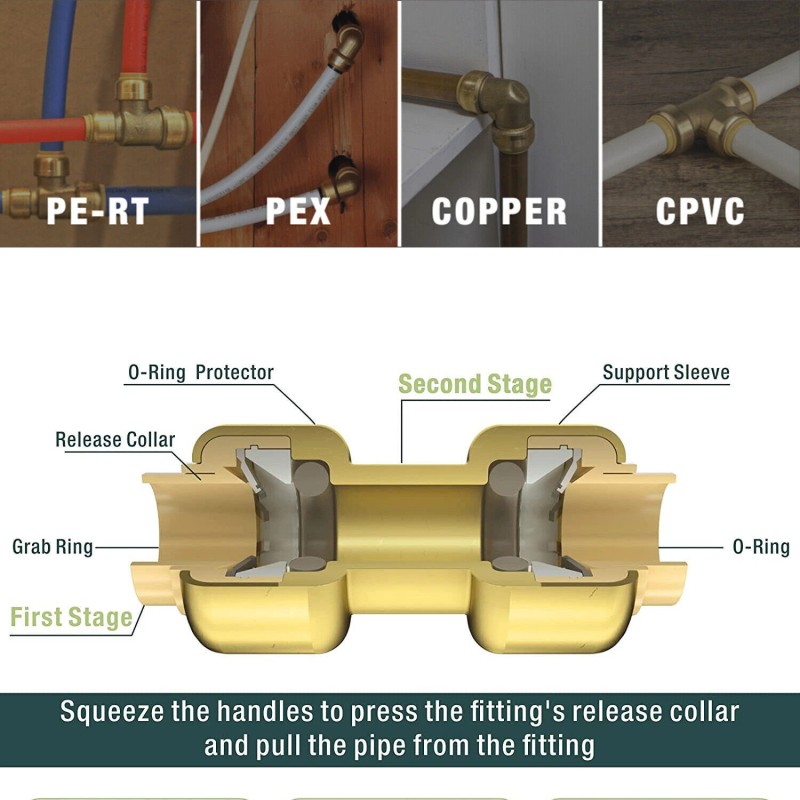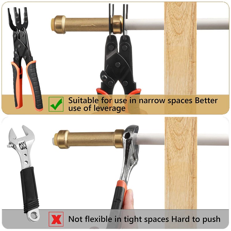 Push-to-Connect,Push-fit Disconnect Clamp Tool for Brass-Push Fittings Features: Our disconnect tongs tool can easily disconnect the push fit fittings within no time, saving your energy, improving your work efficiency greatly. This disconnect pliers will work well with 1/2 inch, 3/4 inch and 1 inch pipe, PEX, CPVC and copper pipe. The choice material will prevent rust, allowing you to use it for many years. The 6 inches long handle increases your power to remove the push fit fitting in 1 inch, 3/4 inch or 1/2 inch. Versatile Tool: the disconnect tongs have 3 size teeth available, can easily remove the push fit fitting, such as push fit elbow, push lock fittings, brass push fit tee or push fit full port ball valve, from PEX, CPVC or copper pipe of 1/2 inch, 3/4 inch or 1 inch Quality Material: the push to connect fittings removal tool is made of 40CR steel and the surface is rustproof by electrophoresis, and TPR coated handle prevents slippage in wet conditions, so it will provide you great experience for many years Easy to Use: slide the tongs over the fitting and the pipe, squeeze the tongs to press the fittings release collar and pull the pipe from the fitting, which is fast and efficient to pop off the connector without much effort Easily Handle Different Situations: the 9.1 inches long pliers can easily reach parts in tight spaces, and can be properly adapted to most shapes of push fit fittings, and the 6 inches handle gives you enough power to release the fittings easily Why You Need It: with the push fit fittings widely applicable on many occasions, modern connectors need our disconnect tongs the same as nuts and bolts need wrenches; We aim to improve your productivity, and we believe our disconnect tong tool will provide you with a great work experience Specifications: Color: as shown in the picture Size: as shown in the picture Quantity: 1 piece Package includes: 1 x Disconnect tongs tool |
