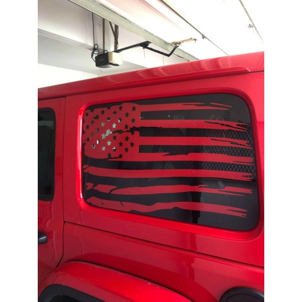 Distressed American Flag Window Decals for Jeep Wrangler Unlimited JKU JLU. This is for a PAIR!