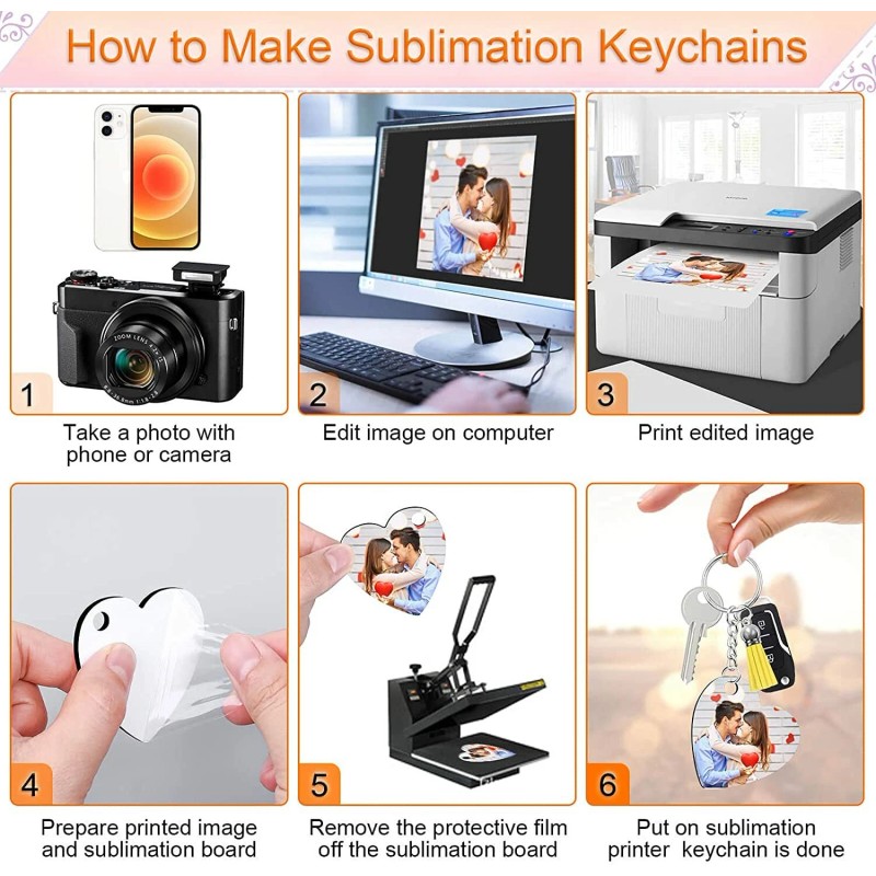 Unbranded DIY Sublimation Keychain Blank 120Pcs Heat Transfer Keychain MDF Pendant 6 Style