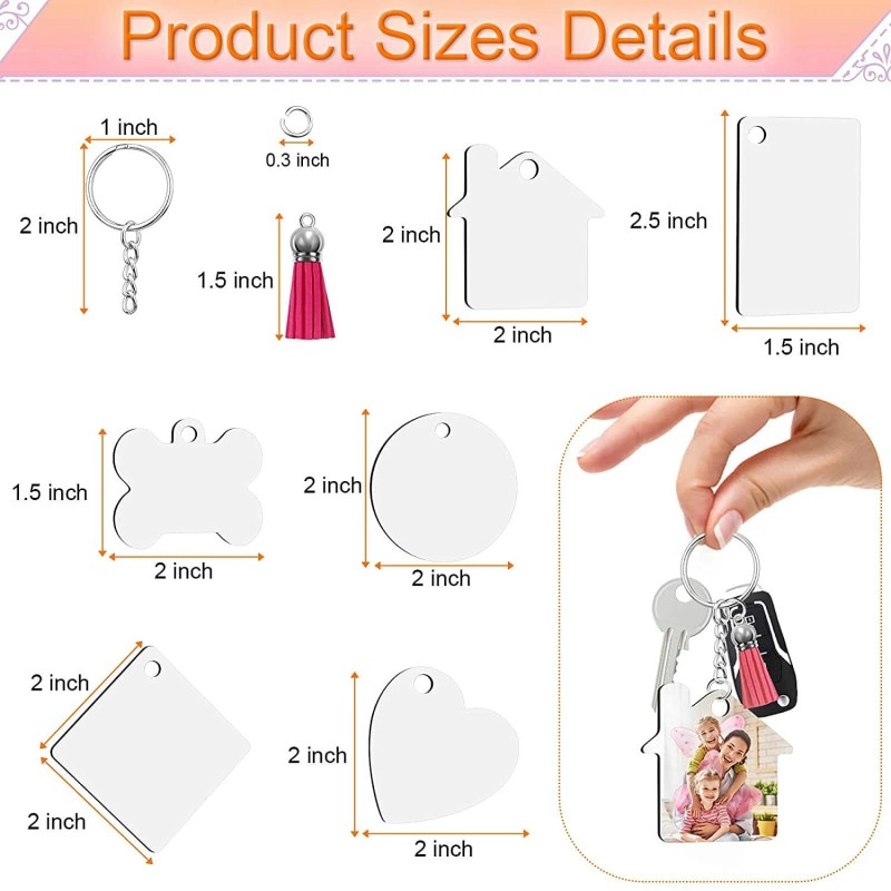 Unbranded DIY Sublimation Keychain Blank 120Pcs Heat Transfer Keychain MDF Pendant 6 Style