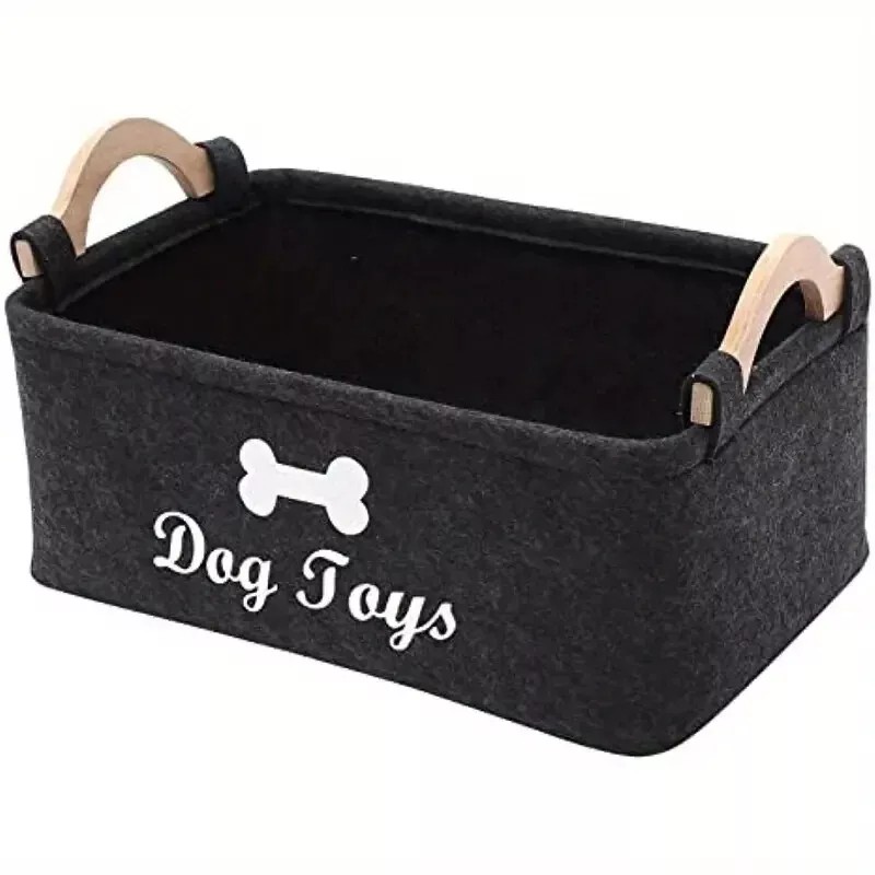 Unbranded Dog toy box wood handle black Felt Pet Toy Storage Basket 15" x 10"