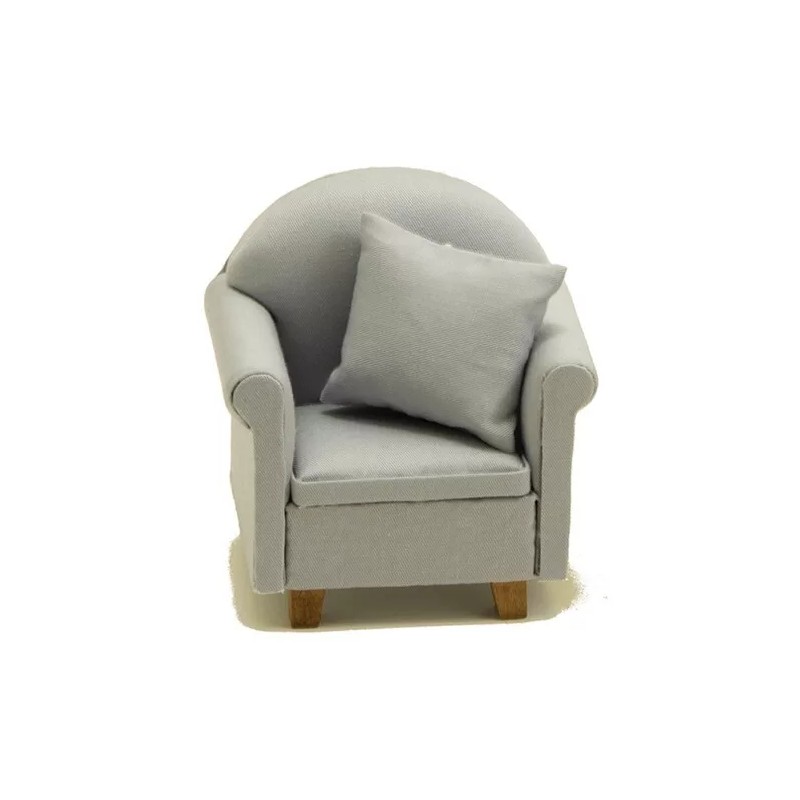 Unbranded Dollhouse Miniatures 1:12 Scale Chair with Pillow, Gray #CLA10952