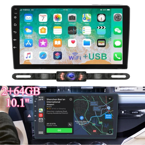 Unbranded Double 2 Din Android 13 Carplay 10.1" Car Stereo Radio W/ Backup Camera GPS WIFI