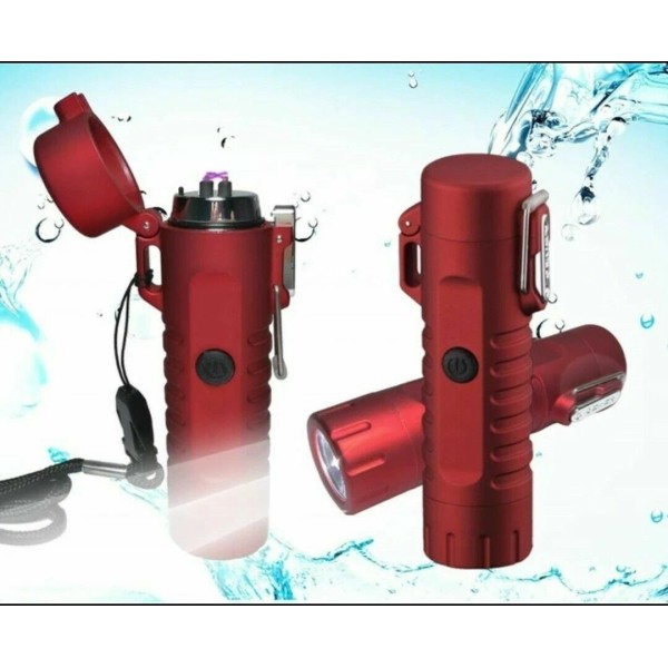 Unbranded Dual Arc Plasma Electric Flameless Lighter & LED Flashlight Waterproof & USB - Red