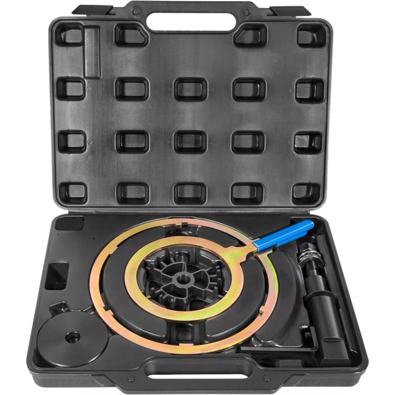 The tool kit is designed to be user-friendly, with ergonomic handles and clear markings to make the installation and resetting process easier for mechanics and DIY enthusiasts.