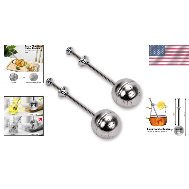 Model: Tea InfuserUnit Quantity: 0.11 lbMaterial: Stainless Steel,Food-grade materialFeatures: Reusable,Strong filtration,Long handle,Airtight design,Easy to clean