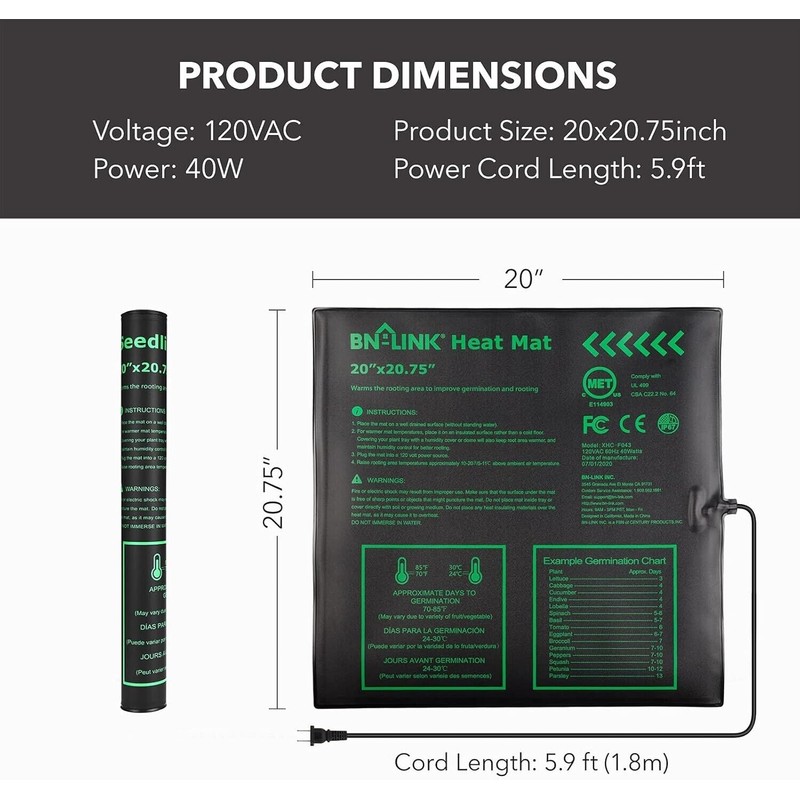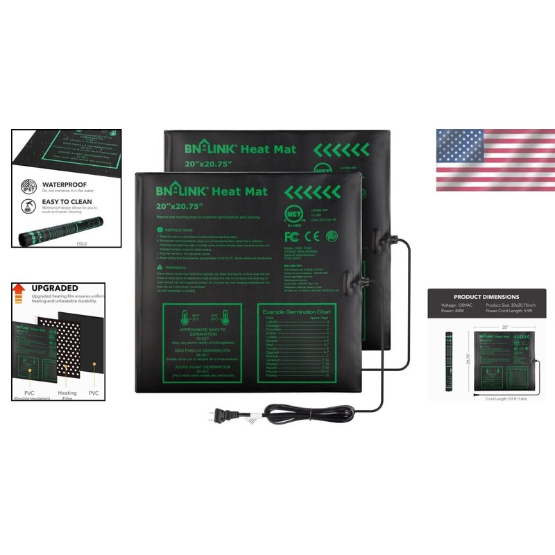 UPC: Not Set | Set Includes: Heat Mat | Features: Waterproof,Consistent Heating,Uniform Heating,Safe Cleaning,15-Month Warranty,Ideal for Germination,Easy Setup | Material: Silicone |