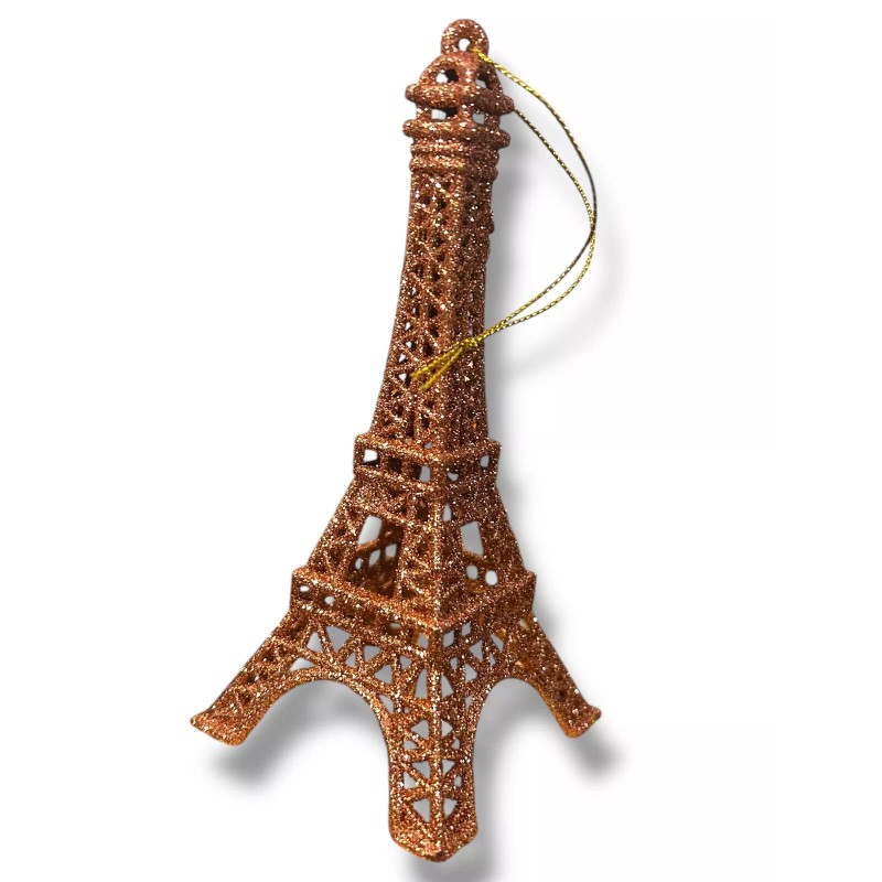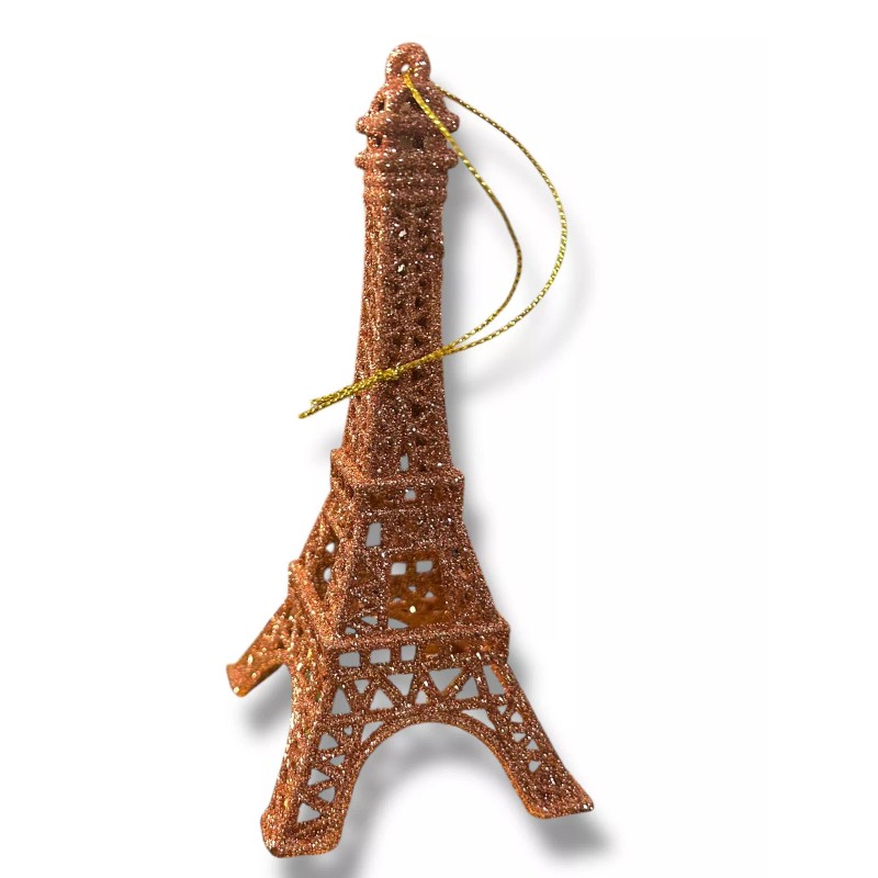 Unbranded EIFFEL TOWER ORNAMENT BRONZE GOLD GLITTER FRANCE STANDING CHRISTMAS NEW 5.5”