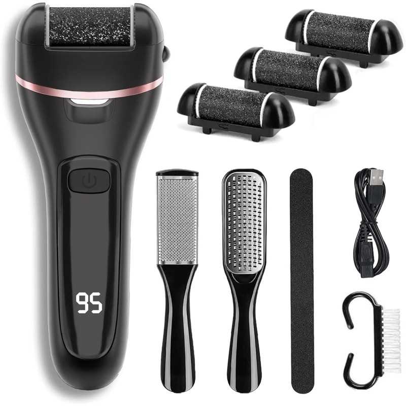 Electric Callus Remover for Feet – Rechargeable Foot File with 3 Roller Heads, 2 Speed Settings, Waterproof Design