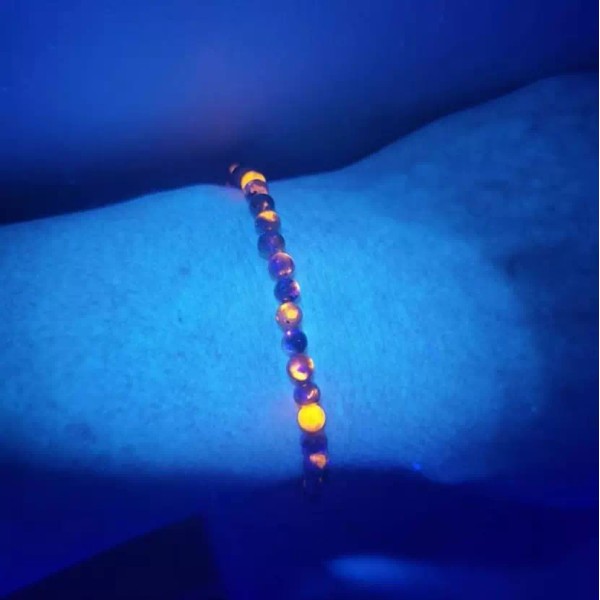 Unbranded Emberlite 4mm Beads UV Reactive Fluorescent Glowing Sterling Silver Bracelet