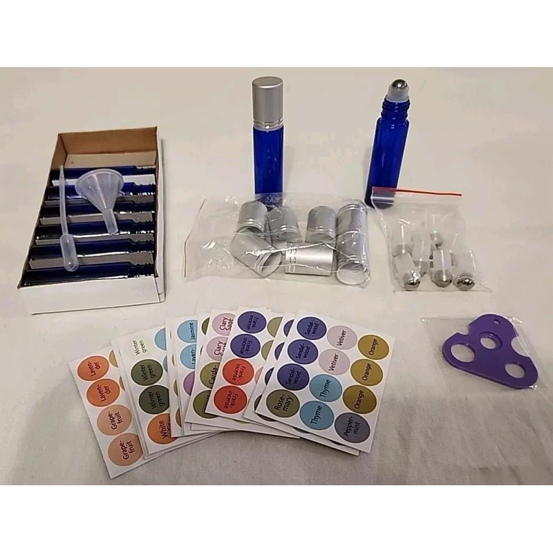 Unbranded Essential Oil Cobalt Blue Glass Roller Bottles Set Of 8- 10ml W/ Labels & Funnel