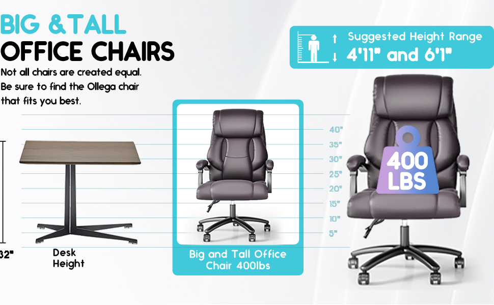 ✌ [Designed for Big and Tall Users]Our Black Office Chair is perfect for both home and office environments. Specially crafted for big and tall individuals, it supports up to 400 pounds (recommended weight 175-250 pounds). It features an oversized, soft native sponge seat cushion (20"D X 21.6"W, 4.7" thick) and a heavy-duty metal base, providing you with a sturdy and reliable seating solution.