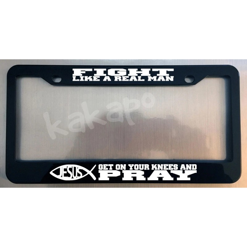 Unbranded Fight Like A Real Man And Pray Christian Jesus Glossy Black License Plate Frame
