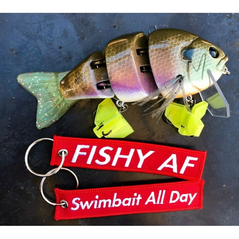 Unbranded Fishy AF /Swimbait all day Red keychain. Perfect for fans of fishing