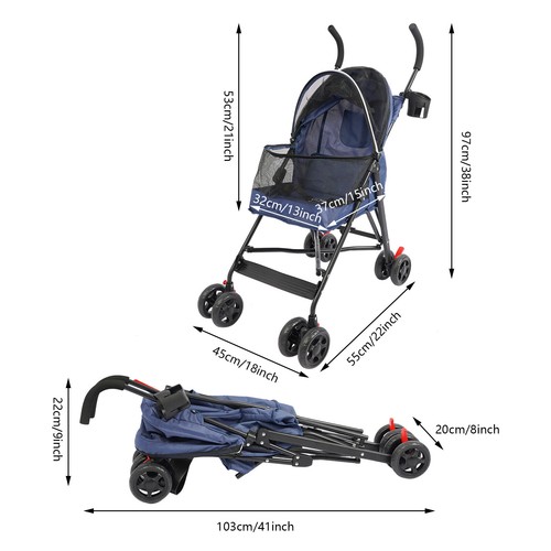 Unbranded Foldable Lightweight Durable Pet Stroller For Small To Medium Pets Dogs And Cats