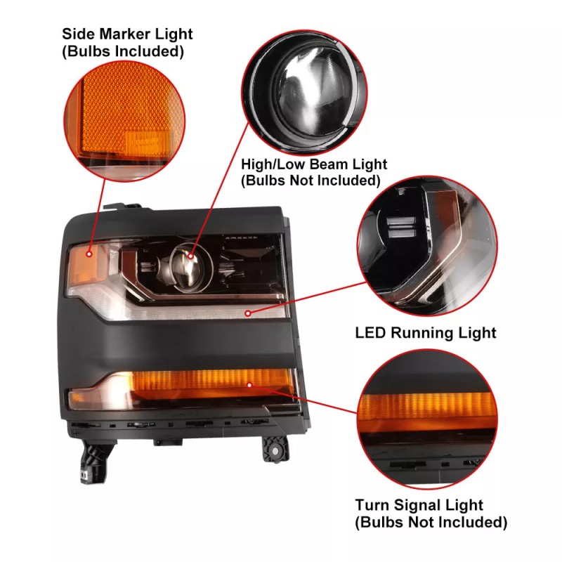 Unbranded For 2016-2019 Chevy Silverado 1500 HID/Xenon LED DRL Projector Headlight- Driver