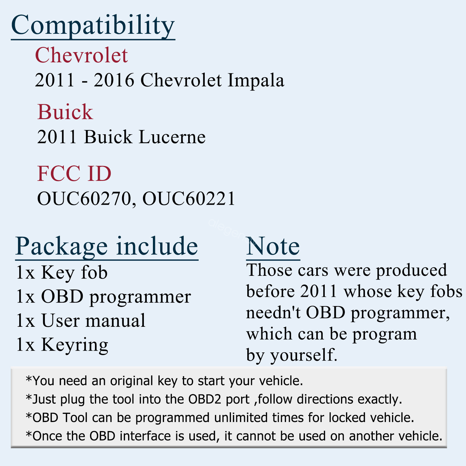 - Fitment 1: For 2011 2012 2013 2014 2015 2016 Chevrolet Impala