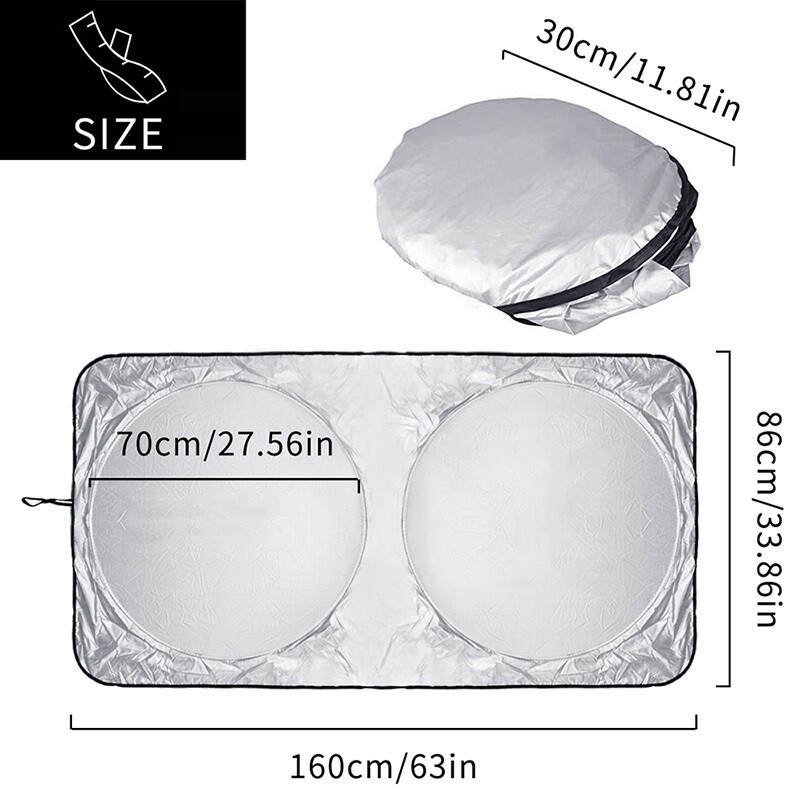 - Perfect Size for Your Cars - This car window shade is 63INCH x34INCH. The sunshade is for car windshield that is no larger than 63INCH x34INCH. Our sun shade car windshield is best for smaller cars windshields. Measure before purchasing to get the best size for your car windshield.