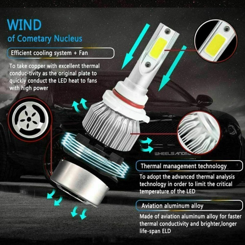 (6pcs/set)9005+H11+5202 Hi-Lo Beam LED headlight conversion kit Latest chip(USA) light source,3 luminous faces no blind zone Engineering beam pattern design throw more light on road evenly at appropriate angle without foggy light Xenon white light reflect road paint/signs better to show clearer road situation during night driving 270 degree low beam angle with cut-off line,will not dazzle oncoming traffic All-in-one heat conduction+high speed mute fan system keep the light bulb in appropriate working temperature Built-in constant current CPU, instant full brightness without start-up relay