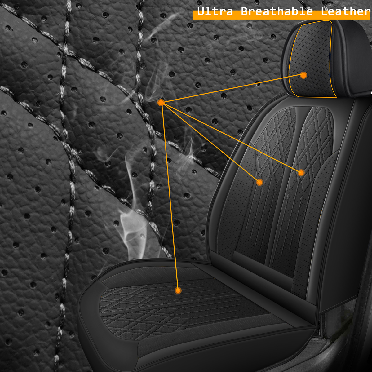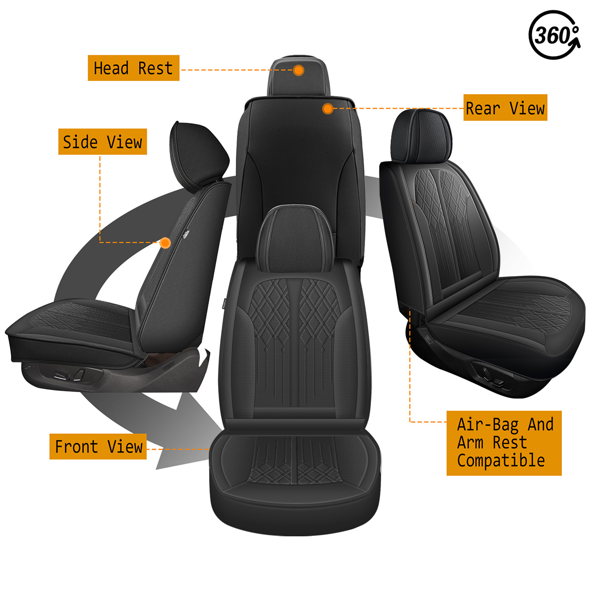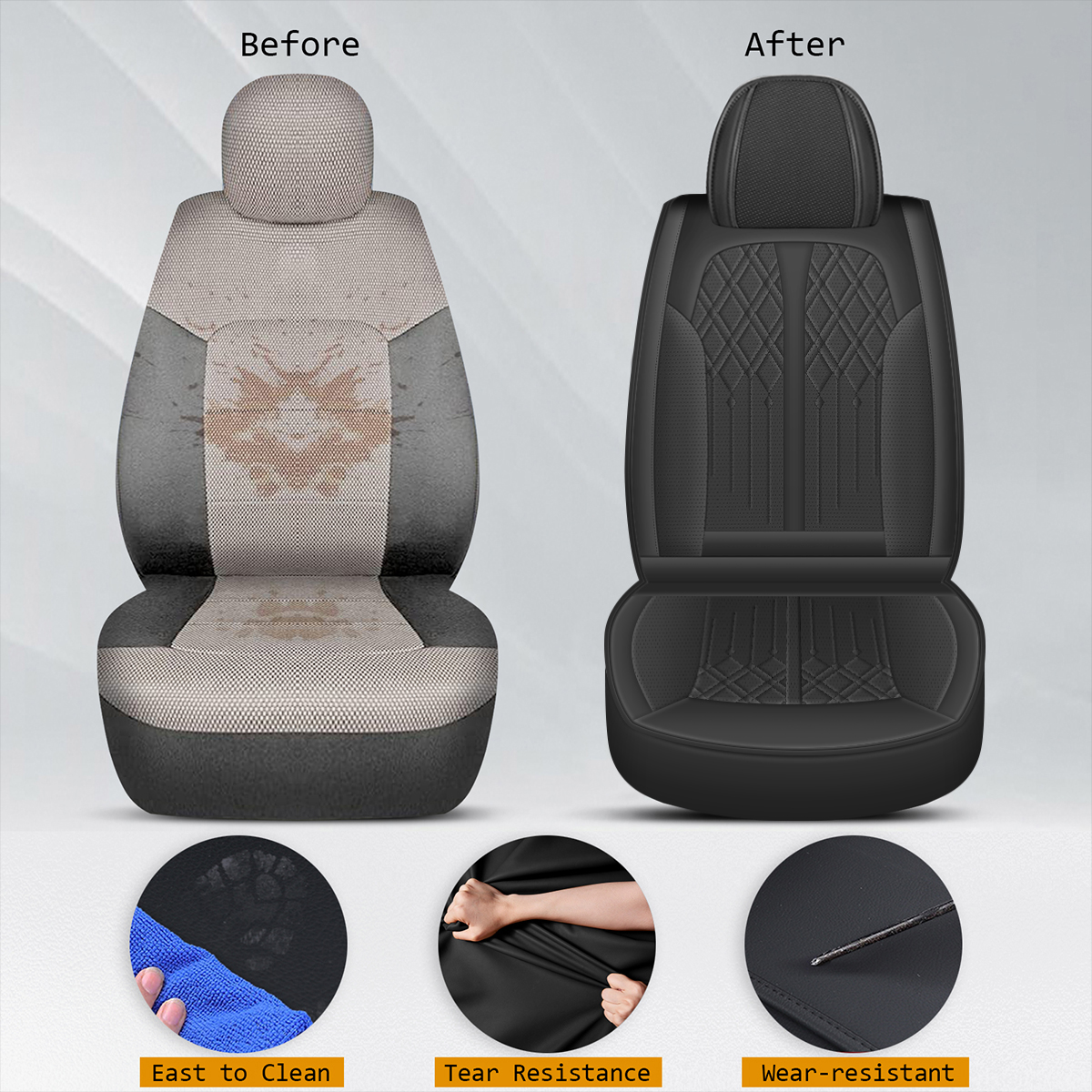 ❤ Material: Premium faux leather is durable, breathable, comfortable and has good waterproof. The interior of the seat cover is filled with sponge, the appropriate thickness allows you to sit for a long time without getting tired.