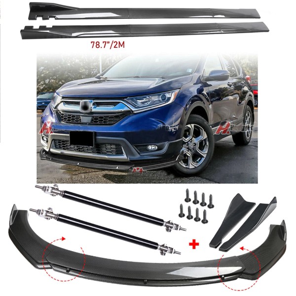 Unbranded For Honda CRV CR-V Carbon Fiber Front Bumper Rear Splitter Spoiler Side Skirt