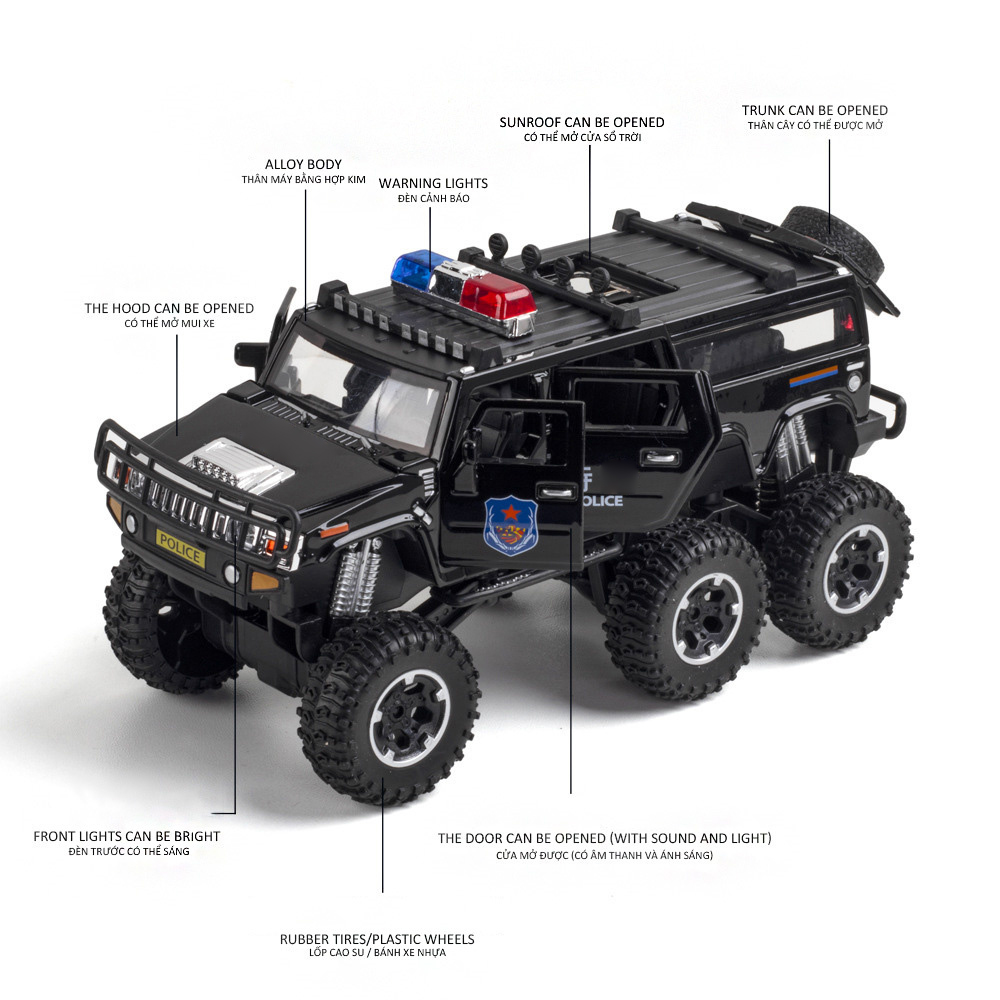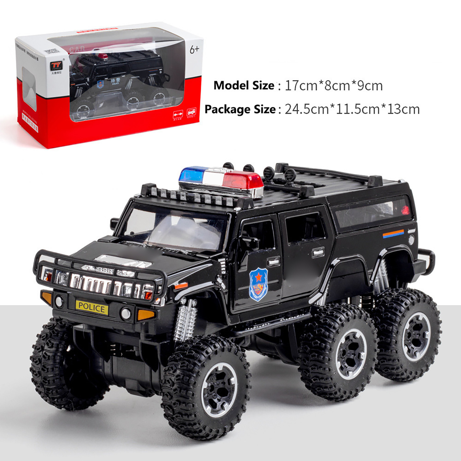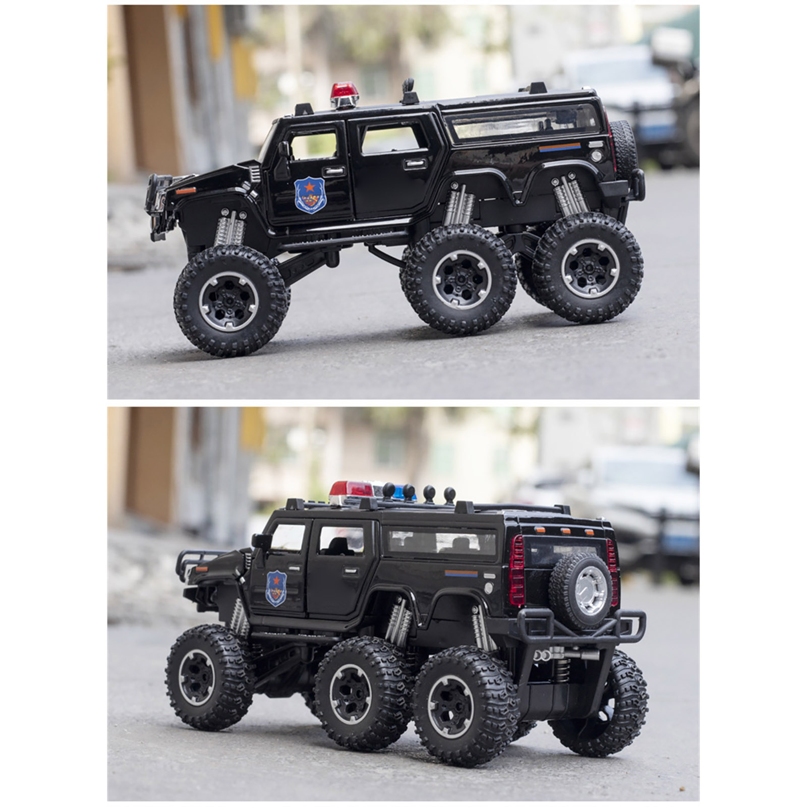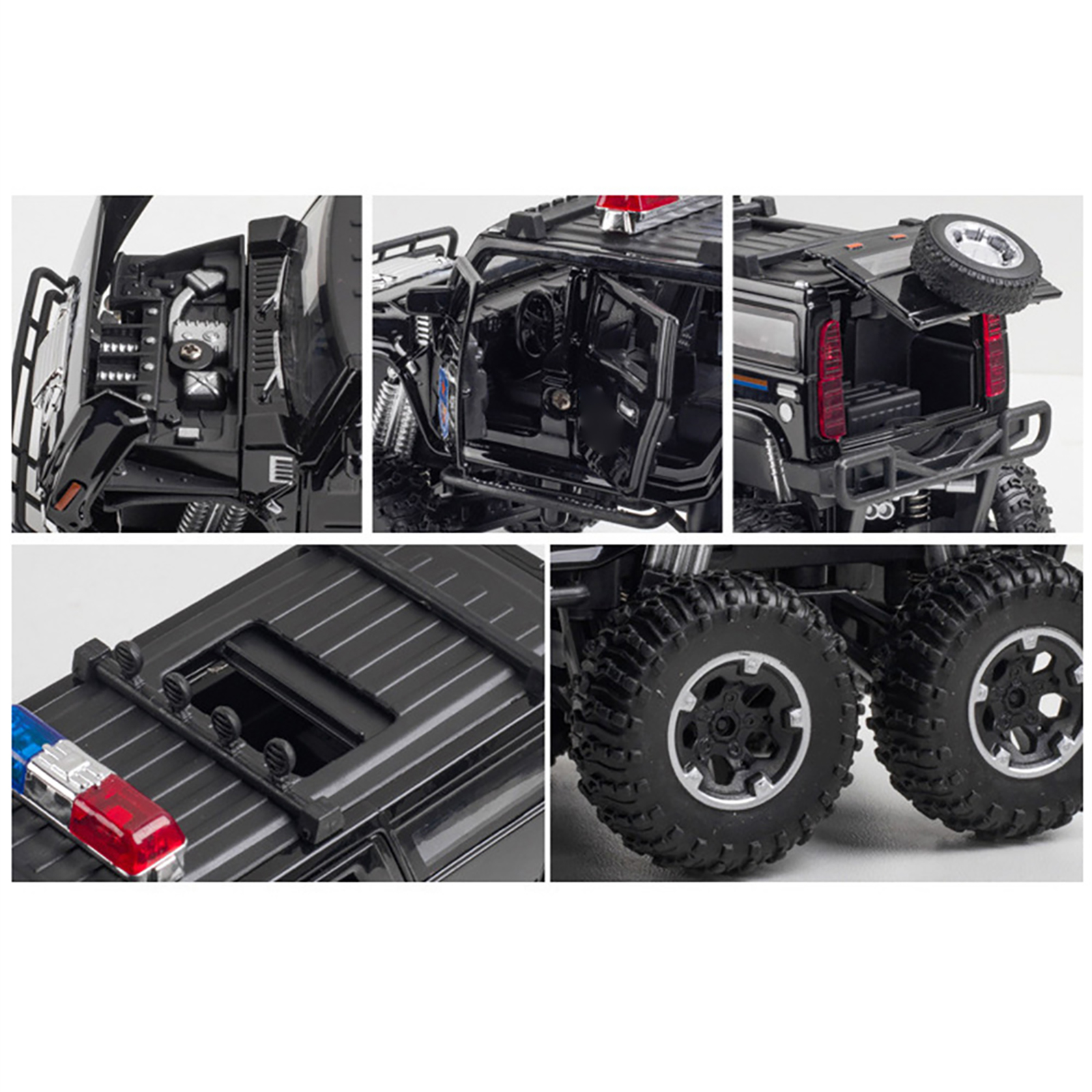 For Hummer H2 Sound&Light Police Car Pull Back Model Doors Openable Vehicle 1/32