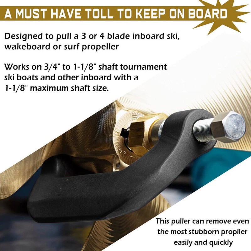 - Fitment -- Inboard prop puller designed for Removing your Ski / Wakeboard / Surf Inboard Prop. Works on 3/4" to 1-1/8" shaft, Works great on tournament ski boats and other inboard with a 1-1/8" maximum shaft size. (NOTE: Must have dimple in end of shaft to use)