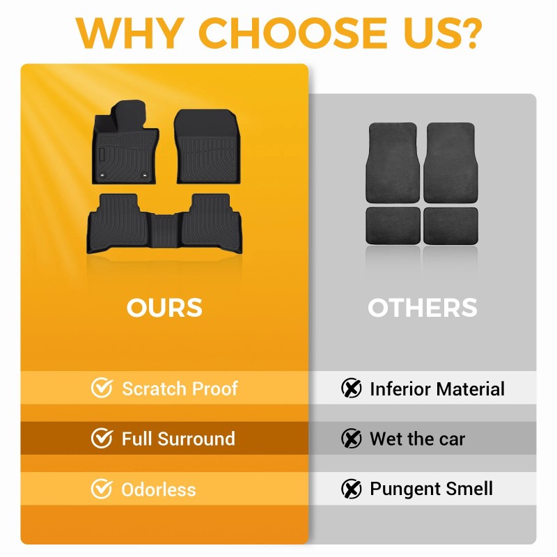 4. High Quality: Rubber Floor Liners made by High-tech 3D digital laser scanning to protect the front and back of your car footwell, which are not easy to wear, fade, waterproof and antifouling, can effectively protect the vehicle floor and extend the service life of the vehicle.