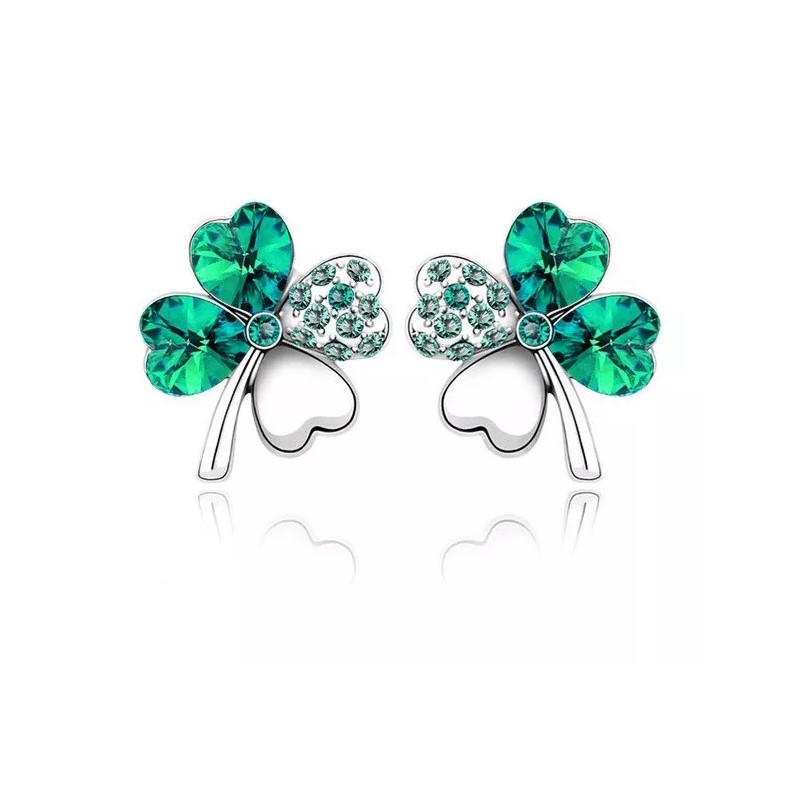Unbranded Four Leaf Clover Pierced Stud Earrings with Austrian Crystal