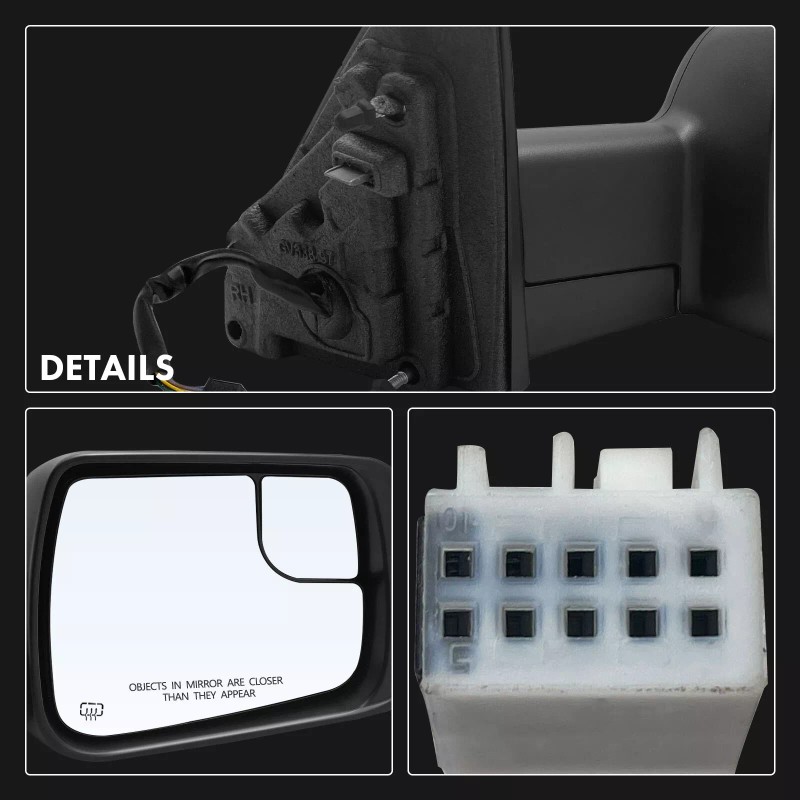 Unbranded Front RH Textured Black Heated Mirror w/ Power Glass Adjust for Ram...
