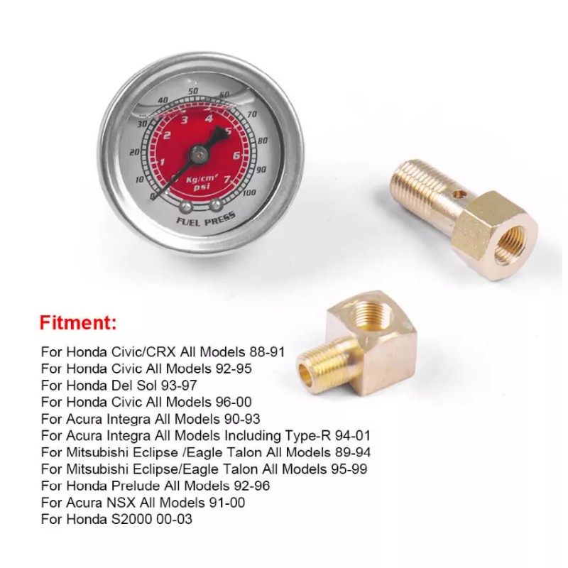 Unbranded FUEL PRESSURE LIQUID FILLED GAUGE KIT RED AND BANJO BOLT FITTING FOR HONDA CIVIC