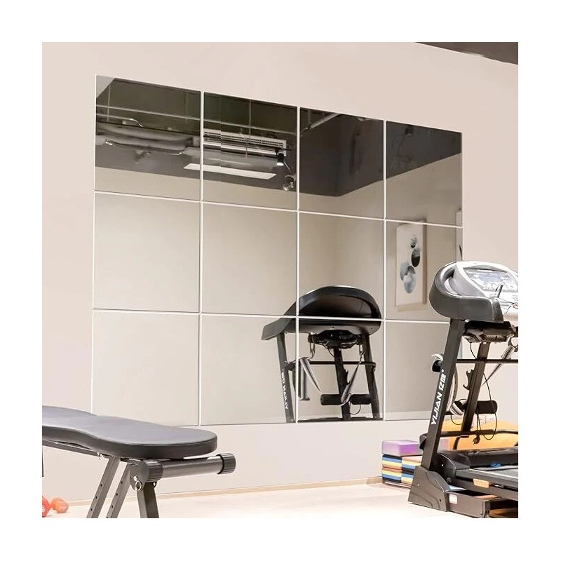 - Versatile Mirror Tiles: Set of 12 mirror tiles, each measuring 12 inches by 12 inches. Perfect for creating gym mirrors for home gym, full-length mirrors, wall mirrors, garage mirrors, and dance mirrors