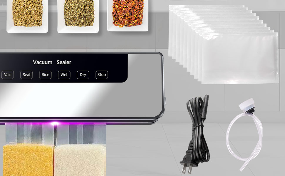 Package Contents:  1 x Vacuum Sealer 10 x Vacuum Sealing Bags 1 x Vacuum Hose 1x User Manual |