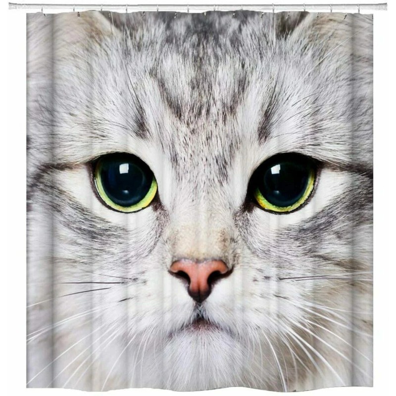 Unbranded Funny-Cat with Big Face Bathroom Shower Curtain Fabric Polyester Bath Curtains