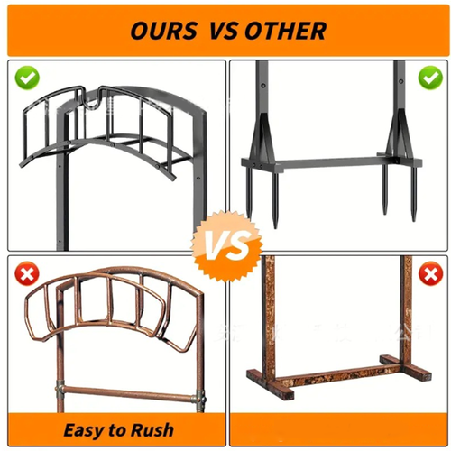 Made of tough metal, rustproof and thickened, ensuring durability and long last. This well made garden hose holder withstands a lot of weight, so it is sturdy enough to hold a large hose and stay upright.